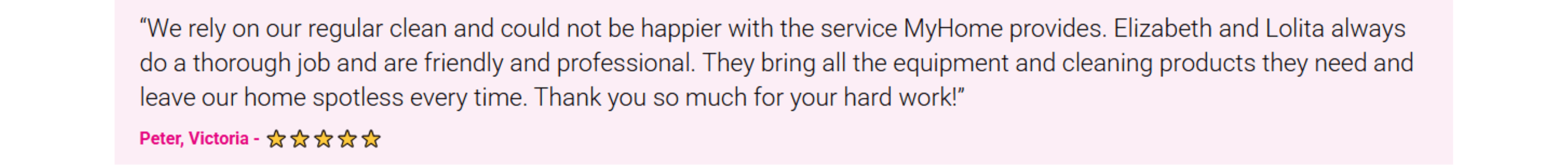 Absolutely! Our interview, training and vetting procedures ensure all our cleaners are trustworthy, discreet and highly dependable. MyHome holds our trust and reputation very highly. We have a reputation as one of the best home cleaning services in Melbourne and we want to ensure we do everything within our power to keep it that way.