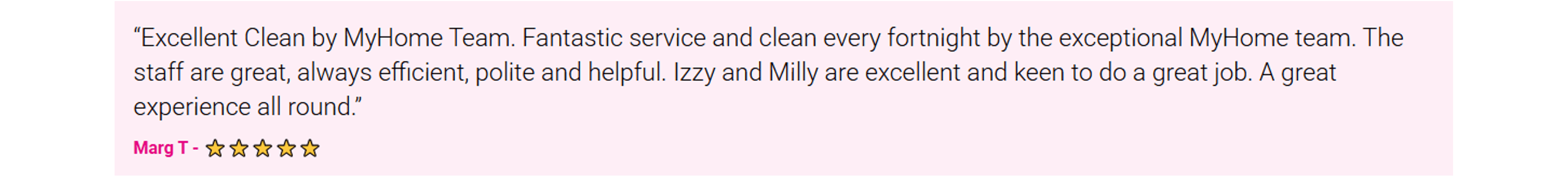 At MyHome, we specialise in quality cleaning services for your home. This means you get an outstanding level of service, at highly competitive rates.